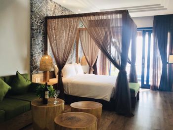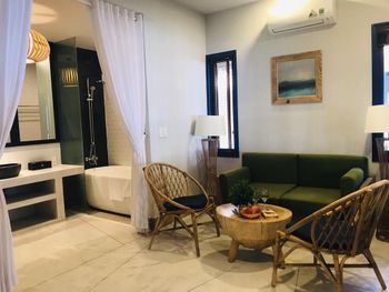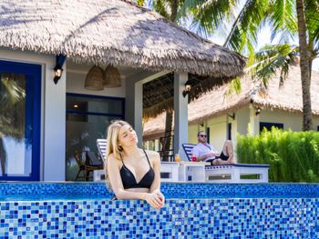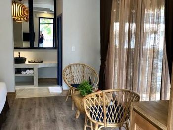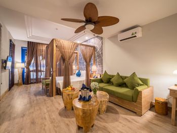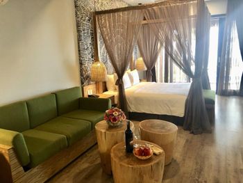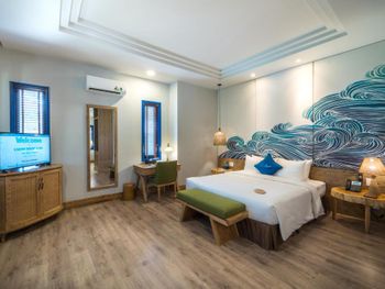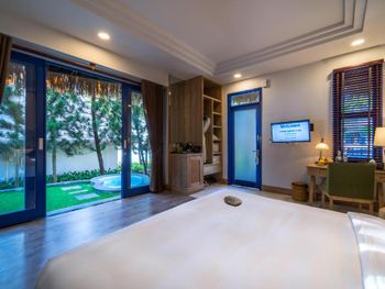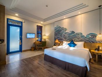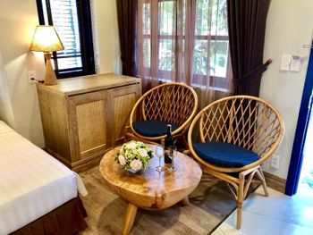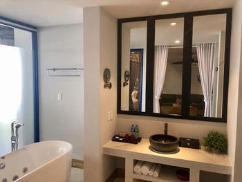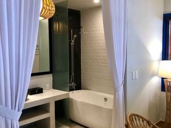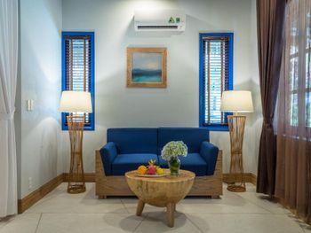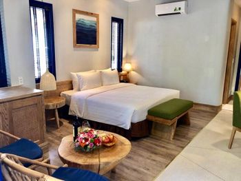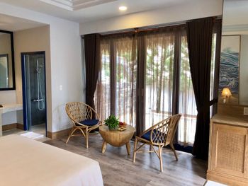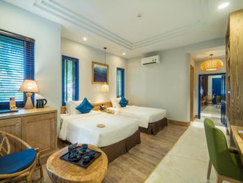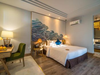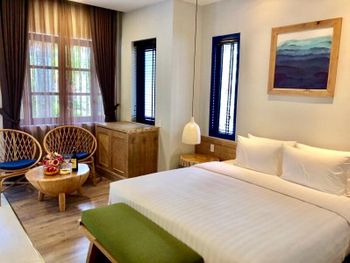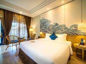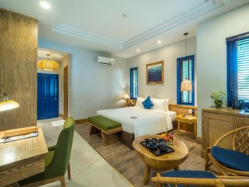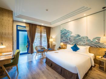 Очень красивый номер, интерьер напоминает Мальдивы и Бали. Помимо стандартных халатов и гигиенических принадлежностей есть пляжные тапочки, пляжная сумка и национальные шляпы non-la. Территория отеля ухоженная, много растений, даже бананы растут. Чувствуешь уединение, у нас с друзьями весь отпуск было ощущение, что мы в отеле одни, настолько комфортно. Пляж фантастический. Песок, чистое и теплое море, высокие и самые красивые пальмы на всем побережье. В любое время дня мы могли найти свободный лежак, проблем не было. Отличный завтрак с широким выбором горячих блюд, закусок, десертов и фруктов. Я полюбила вьетнамский бульон. Отель при этом находится рядом с многочисленными кафе, магазинами и ночной рынок в пешей доступности. Рядом также остановка бесплатного автобуса #17, который идет до парков Vinpearl В аэропорту и обратно нас увез бесплатный трансфер, предоставленный отелем Огромное спасибо за Ваш труд! Мы в восторге от нашего пребывания и вернемся к Вам вновь❤️
