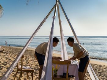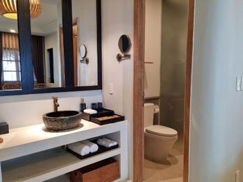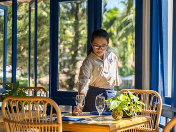 Отдыхали с 17.02. по 20.02.25г. отель очень понравился, тихое, спокойное место, для тех кто не любит суеты, после этого отеля переезжали ещё в один 5-ти звёздочный, там нам понравилось меньше. На самом деле очень уютное место для семейного отдыха, отдыха с детьми, пары. Пляж: Чистый пляж, как на суше так и в воде, вход не резкий, но и не пологий, что то среднее. На самом деле отель ухаживает за своим участком пляжа хорошо, я прошёл по всему пляжу, около 2х км. Таких уютных выходов на пляж было 3-4 места. Людей не так много, что очень хорошо, опять же сравнивая с другим 5-ти звездным отелем, где было много людей, поиск лежака и т.д. Завтраки: я не прихотлив в еде и не понимаю тех людей, кто жалуется на "однообразные" завтраки, В отеле хорошие завтраки,всегда есть что выбрать, от местных блюд, до стандартных европейских, единственное что маловато было это выпечки, хотелось бы побольше булочек :-). Уборка: Здесь хотелось бы получше, номер убирают, полотенце меняют, но вот полы не совсем хорошо протирают. Персонал: Очень доброжелательны, от уборщика/ садовода до администратора. Опять же сравню с другим отелем куда потом переехали, не смотря на то что там было 5 звёзд, персонал посредственный. Расположение: Здесь особо говорит не чего, до ночного рынка можно прогуляться пешком, минут 20 идти, можно на электрокаре доехать, благо местные шныряют часто. Кстати случай был, в первые дни приезда вышли днём, хотели дойти до рынка, на что местный извозчик сказал что там ничего не работает и он готов наз отвезти в хорошее место, где всё работает и всё вкусно, что он только что отвёз туда русскую семью и им оочень понравилось, я сразу понял что это развод, но согласился на это, даже интересно было что из этого выйдет. Так вот он нас привёз в достаточно неплохое большое кафе, на берегу, где были аквариумы с разными морскими обитателями, мы выбрали что нам нужно и стали ждать.