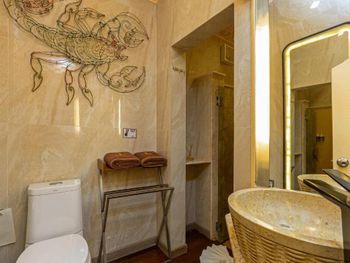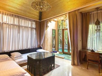 Выбрали отель по отзывам, в итоге разочарование. Сняли виллу на 2 дня ( рада, что не дольше ) Первый день- сломался туалет два раза ( не споласкивал), кондиционер на втором этаже сломался три раза ( дует, но не охлаждает) Переселили в другой номер Второй день- кондиционер опять дует, почти не охлаждает, устали уже, не пошли жаловаться, спасались вентилятором. С потолка капала вода, прямо под унитазом, который на втором этаже . Виллы разваливаются на глазах. Ручка от двери в ванную отвались от первого прикосновения, вся сантехника затертая- ржавая, диван в пятнах, подушки на нем тоже, на декоре пыль, дверь раздвижные в ванной отваливаются, шезлонги дырявые, на шторах плесень и дыры. Персонал пытался починить поломки, но опять сразу все ломалось. Итог- советую бронировать максимум 1 день из-за атмосферы. Персоналу предлагаю возместить мне моральный ущерб финансово, в виде одно дня проживания.