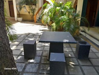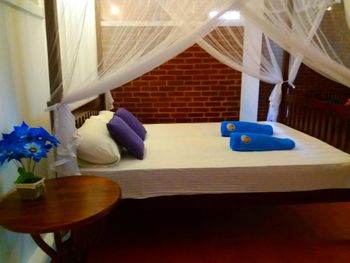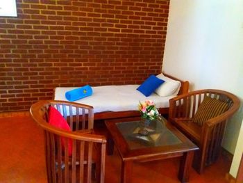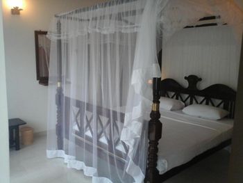 Расположение изумительное - с одной стороны территории калитка к торговой улице ( примерно 40-50 метров), с другой - выход к морю (примерно 100 метров). Находится в центре курортной жизни, но одновременно в тихом зеленом уголке. Горячая вода есть всегда, питьевую воду можно купить на ресепшен по хорошей цене. Можно заказать экскурсии (цены тоже хорошие). Мы брали индивидуальную прогулку по озеру Кагалла.