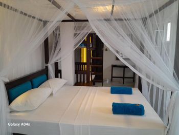 На завтрак яичница/омлет/ из двух яиц, тосты с джемом, чай/кофе с молоком, фрукты. Анжу понимает по русски хорошо, сам организовывает и возит на экскурсии по демократической цене. В номере было все что нужно для проживания: чайник, плита, вода (еще и отдельный душ с проточным бойлером, и гигиенический душ), посуда. Есть потолочный вентилятор и кондиционер. Правда, кондиционер не морозит, но, в принципе, до приемлемого уровня охлаждает. Воду кипятили из под крана, не покупали. Вода вкусная. Пляж рядом. При входе в главные ворота есть кран с водой, где можно помыть ноги. Анжу оперативно реагирует на замечания. Так же там же у его жены (она швея) можно купить простую белую хлопковую рубашку (чтоб в ней ходить и не обгореть) - самая дешевая цена в Уне. Итоговую оценку поставил высокую, потому что сравнил с гестом из Диквеллы.