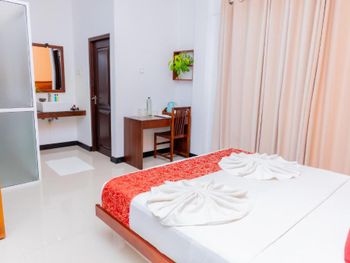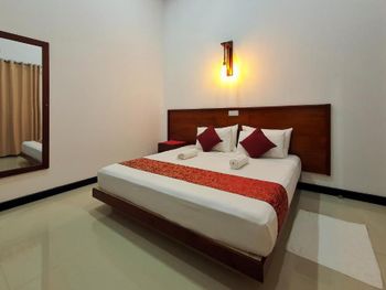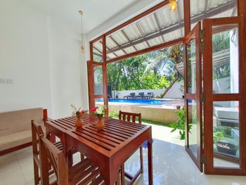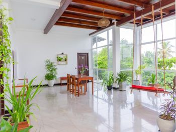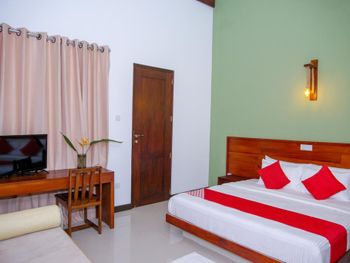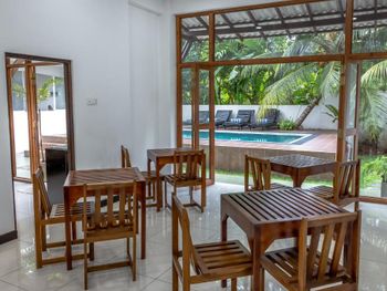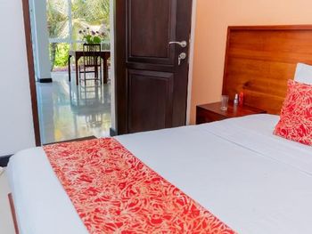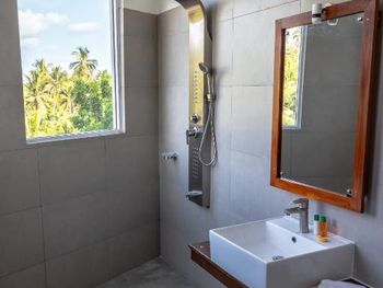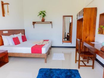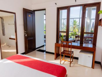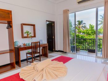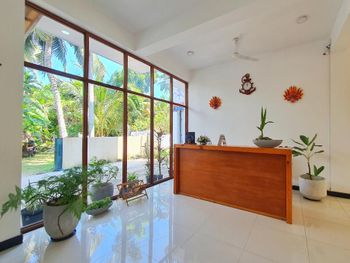 Отдыхали здесь 7 ночей в январе, все очень понравилось! При заселении нам провели небольшой обряд, было очень интересно, угостили обеих вкусным соком, с дороги это было самое то. Очень приветливый персонал, администратор всегда был на связи, нашел нам за пару часов трасфер в аэропорт (дороговато, но доехали на комфорт+), молодые ребята которые там работают всегда улыбались, помогали, приносили все что просили (утюг, зонтик и тд). Мы оставляли свои сланцы после пляжа при входе, ребята постоянно их чистили, когда поливали цветы😅 мы ни разу не просили, они делали это сами, это было очень мило. У нас был отдельный вход с улицы, но мы и на качелях катались, и на террасах сидели-с этим было все ок. Пару раз завтракали (приложу фото) порции большие-очень вкусно😍 фрукты были спелыми, чай вкусный. Вентилятор и кондиционер был, все супер работало, вода была всегда и холодная и горячая. Сразу был разъемник для наших зарядок, стоял анти-комарник, нас не кусали ни разу, был фен (но он вам там не нужен 100%), чайник, стаканы и вода, вай фай был, но мы больше на мобильных данных сидели. Бассейн чистый, не большой, глубина около 1,5-1.6. но нам было нормально) с другими жельцами в бассейне ни разу не сталкивались, ставили нам иногда там местную музыку)) Расположение для нас, двух молодых подружек, было удобное, рядом много тук-тукеров, даже во дворе стоит один)) пляж с большими камнями прям в 5 минутах от отеля-если пройти через узкую дорожку между отелями. Дальше, можно пройтись по пляжу минут 10 и будут вам и пляжи с волнами и без волн тоже, рядом железная дорога-но нам она не доставила неудобств, ездят редко и быстро, пару раз слышали, но не просыпались. В отеле очень много зелени, очень классно и свежо, сам отель очень уютный и светлый, минималистичный. В конце дали небольшие магнитики на память, мелочь, а приятно😘 если будем возвращаться в Шри ланку-то обязательно остановимся здесь повторно! Спасибо ребятам, желаем вам больше отзывчивых жильцов❤️
