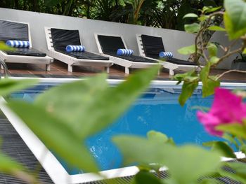 Номера чистые (как сначала показалось), но не хватало прикроватных розеток. Каждый вечер в номерах были какие-то животные (паук большой и ящерица). В первую ночь меня кто-то укусил, сначала подумала может комары, так как в розетке фумигатор, а оказалось, что это были постельные клопы, в связи с чем у меня появилась аллергическая реакция на всю ногу!!! Так что, если вдруг решите остановиться в данном отеле - берите с собой спрей от насекомых и поливайте им себя перед сном. Душ классный, есть хороший напор с горячей водой. Оценить бассейн так и не удалось, так как он слишком мал и возле него вечно тусуются люди и громко играет музыка, особенно по вечерам, так что если у вас будут окна номера выходить на бассейн - сочувствую. Не поняла про прикол обувь оставлять на входе. Завтраки в стоимость номера не входят, их можно оплатить отдельно. Но сколько мы раз приходили на завтрак, после заказа ждали по 30-40 минут яичницу, притом, что кроме нас ещё два человека были. Хотелось просто встать и уйти. В ресторанах более сложные блюда с полной посадкой и то приносили в течение 20 минут, в общем сервис в ресторане очень сильно хромает. Отель максимум на одну ночь, очень пожалела, что осталась здесь на три.