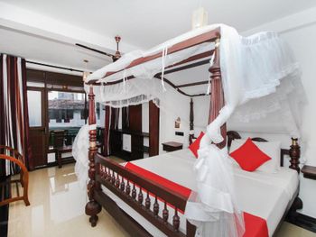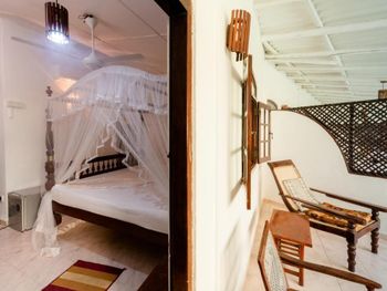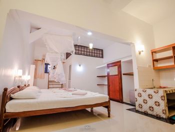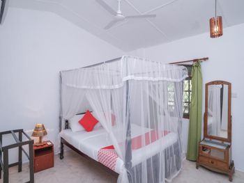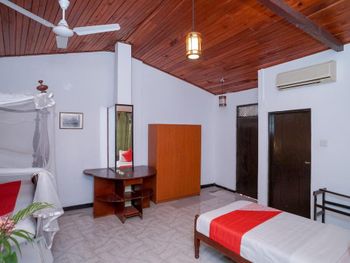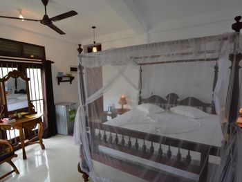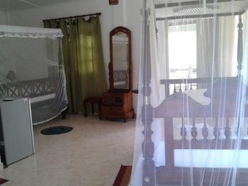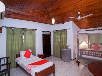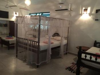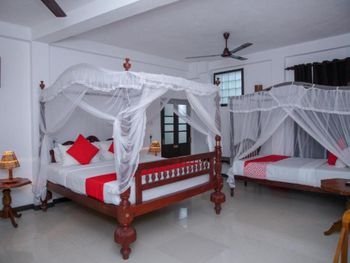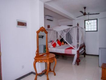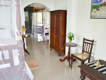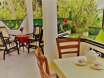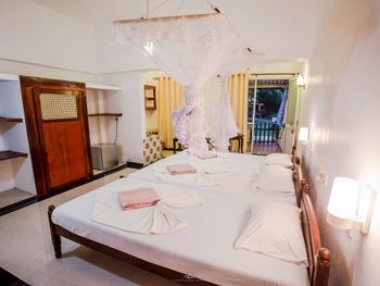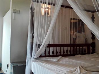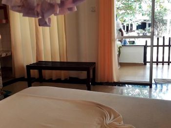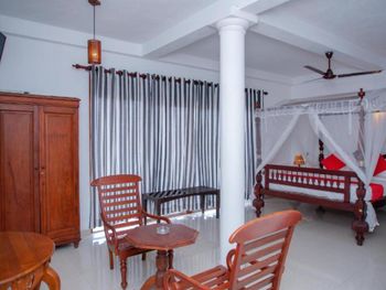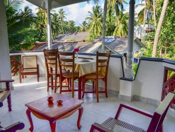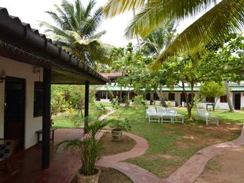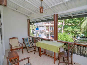 Расположение очень удачное, не смотря на то, что до пляжа нужно переходить дорогу, проблем не было, так как отель находится в тупике. Свои лежаки на пляже. То, что отель находится немного дальше от всех развлекательных заведений и хоть и было слышно музыку, но не так сильно как в центре. Персонал приветливый, номера по бронированию были готовы во время нашего приезда. Полотенца и уборка по запросу, нужно - оставил ключи и уберут. Полотенца меняли так же по запросу, хоть каждый день. Номера Делюкс большие с балконами или террасами, которые закрывались на ключ. В номере был чайник, холодильник, телевизор и стаканы. Вай-фай в номерах был, работал нормально на звонки и серфинг в интернете хватало. Завтраки шведский стол, но без мясных продуктов и сыра. Фрукты были всегда, тосты, масло, джем. И блюда ланкийской кухни. Самое главное, чем нас покорило это место - уют, внутри тихий дворик, много деревьев и тени, всякие мелкие животные и птички гуляли вокруг.