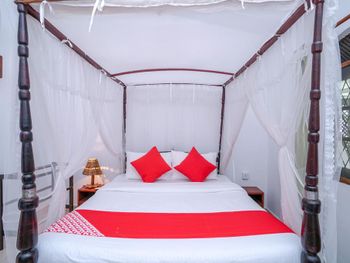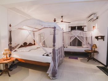 Отельный пляжик через дорогу от отеля, немноголюдный и очень приятный, и прям там же столики и можно покушать. Номер был просторный, кровати с балдахинами, средство от комаров в розетке, в номере не было посторонних запахов. Одна простыня была не очень чистая, ее сразу же поменяли, сервис хороший. Завтраки шведский стол, блюда немного непривычные, без мяса, но вкусные! и каждый день что-то другое. Я была в семейном номере, там есть стиральная машинка.