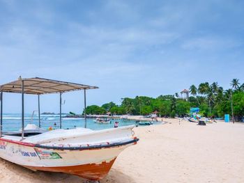 Хорошее расположение отеля к пляжу, но купаться ходили на середину пляжа,т.к где находились отельные лежаки было мелко и постоянно ездили лодки. Завтраки на любителя, кому нравится ланкийская кухня.