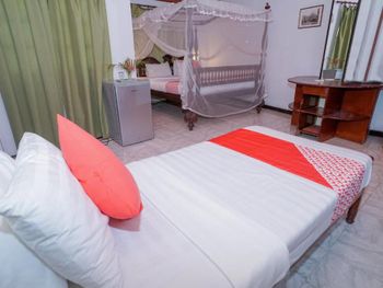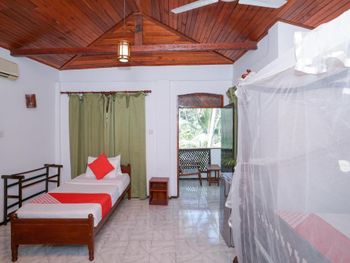 Расположение очень удачное, не смотря на то, что до пляжа нужно переходить дорогу, проблем не было, так как отель находится в тупике. Свои лежаки на пляже. То, что отель находится немного дальше от всех развлекательных заведений и хоть и было слышно музыку, но не так сильно как в центре. Персонал приветливый, номера по бронированию были готовы во время нашего приезда. Полотенца и уборка по запросу, нужно - оставил ключи и уберут. Полотенца меняли так же по запросу, хоть каждый день. Номера Делюкс большие с балконами или террасами, которые закрывались на ключ. В номере был чайник, холодильник, телевизор и стаканы. Вай-фай в номерах был, работал нормально на звонки и серфинг в интернете хватало. Завтраки шведский стол, но без мясных продуктов и сыра. Фрукты были всегда, тосты, масло, джем. И блюда ланкийской кухни. Самое главное, чем нас покорило это место - уют, внутри тихий дворик, много деревьев и тени, всякие мелкие животные и птички гуляли вокруг.