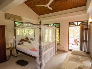 - современный кондиционер работает как часы - великолепная кровать принцессы с балдахином - чисто, просторно - есть своя кухня со всем необходимым - за 9 дней посмотрели почти на всю живность острова, включая варанов и обезьян - очень даже приличные завтраки, хотя и не блещущие разнообразием - свой ресторан с гениальным шеф-поваром и столиками на пляже - свои шезлонги на пляже