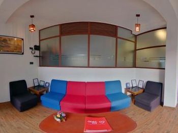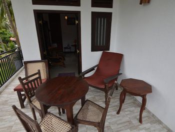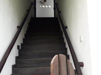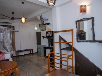 Очень крутая и узкая лестница на второй этаж, где у нас был номер. Не так мешает рядом стройка, как сильный ветер и шум от деревьев, которые не давали ночью нормально спать (но возможно они не всегда так сильно шумят) . Рядом речка, похожая на болото, откуда периодически был запах и комары.. Столовая для завтраков не очень приятное впечатление произвела - тут точно требуется ремонт!