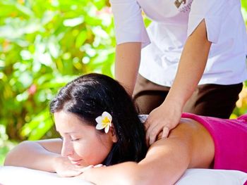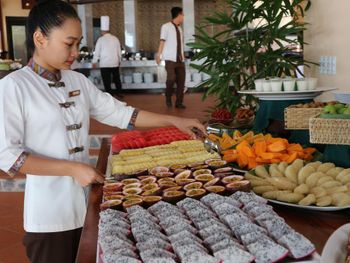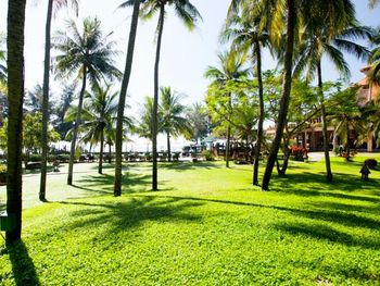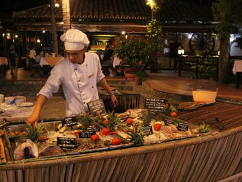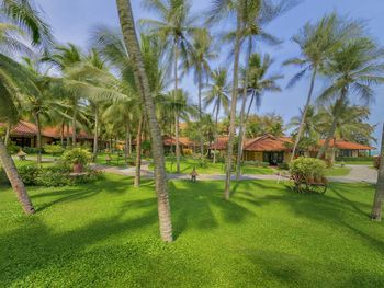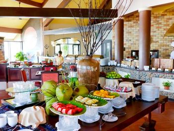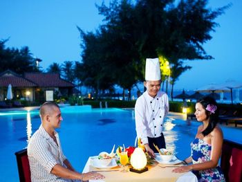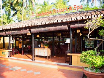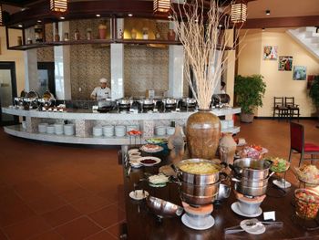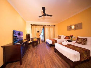 Завтрак очень сильно азиатский. И вообще ресторан не умеет готовить европейские блюда. Еда не вкусная.. Старый отель и весьма запущенный (даже огромное окно в ресторане, которое выходит на прекрасную террасу с видом на море, не могут помыть). Я не знаю, как обстоят дела в основном корпусе, но бунгало - это ужас. Некрасиво внутри, грязные, все в пятнах пота (и, может, чего похуже) подушки. Отсутствие пододеяльников: простыня - одеяло - простыня. Вот так и спи.. Одеяло, само собой, такое же "чистое и свежее", как и подушки. Но самый ужас: это ванная комната. Это выглядит экзотично и красиво, но: в ванных комнатах бунгало просто отсутствует одна стена. Т.е там стоит невысокий забор и висят шторки... Которые мало что закрывают. Как итог: моешься и сидишь на унитазе очень быстро, потому что комаров очень много и они пытаются тебя сожрать. А мы были в мае... Т.е ещё атакуют огромные, реально огромные майские жуки, которые летят на свет лампы в тёмное время суток. И песок на полу в бунгало. А тапочки - многоразовые, обычные резиновые. И, судя по чистоте, вряд ли их вообще моют. Однозначно бунгало в этом отеле бронировать не стоит. На счет основного корпуса ничего сказать не могу.