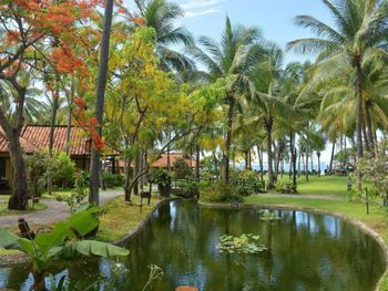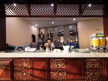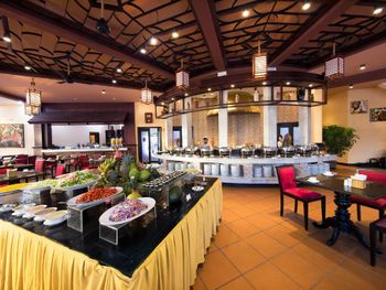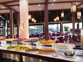 Завтрак очень сильно азиатский. И вообще ресторан не умеет готовить европейские блюда. Еда не вкусная.. Старый отель и весьма запущенный (даже огромное окно в ресторане, которое выходит на прекрасную террасу с видом на море, не могут помыть). Я не знаю, как обстоят дела в основном корпусе, но бунгало - это ужас. Некрасиво внутри, грязные, все в пятнах пота (и, может, чего похуже) подушки. Отсутствие пододеяльников: простыня - одеяло - простыня. Вот так и спи.. Одеяло, само собой, такое же "чистое и свежее", как и подушки. Но самый ужас: это ванная комната. Это выглядит экзотично и красиво, но: в ванных комнатах бунгало просто отсутствует одна стена. Т.е там стоит невысокий забор и висят шторки... Которые мало что закрывают. Как итог: моешься и сидишь на унитазе очень быстро, потому что комаров очень много и они пытаются тебя сожрать. А мы были в мае... Т.е ещё атакуют огромные, реально огромные майские жуки, которые летят на свет лампы в тёмное время суток. И песок на полу в бунгало. А тапочки - многоразовые, обычные резиновые. И, судя по чистоте, вряд ли их вообще моют. Однозначно бунгало в этом отеле бронировать не стоит. На счет основного корпуса ничего сказать не могу.