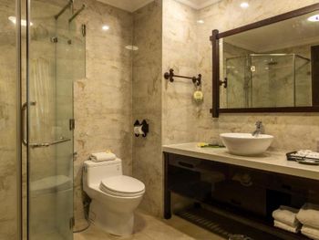 Adorned in warm shades with tasteful furniture, all air-conditioned units have a fan-cooled option, personal safe and seating area with sofa. A private balcony and cable flat-screen TV are offered. Views of the garden can be seen from selected units. En suite bathroom is equipped with shower facility and a hairdryer. Extras include free toiletries, slippers and bathrobes.