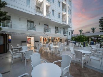 Территория отеля маленькая, но в целом я бы отнесла этот отель к "городскому" типу: можно спокойно выйти за территорию и прогуляться по променаду.