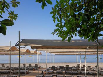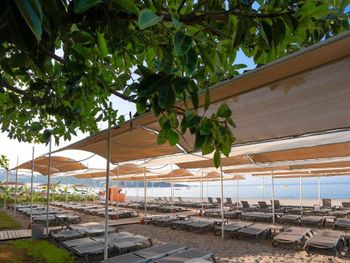 Красивый современный дизайн, вкусная разнообразная еда. Живописный вид на бухту. Лежаков всегда всем хватало. Отличная работа барменов.