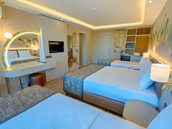 Все было на высшем уровне. Вкусно кормили, разрообразная еда! Приветливый персонал. Каждый день устраивали разное шоу,конкурсы. Очень понравилась женщина которая предлагала хаммам) Нас персонал принял раньше на 2 часа чем 14:00. Нас поселили в шикарный номер с видом на море!Вернемся в следующем сезоне обязательно. Всем советую этот отель
