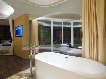 Во всех просторных номерах установлены кондиционер, диван, шкаф и сейф. Среди прочих удобств телевизор с плоским экраном, мини-бар и электрический чайник. Собственная ванная комната с душем или ванной укомплектована феном и бесплатными туалетно-косметическими принадлежностями.