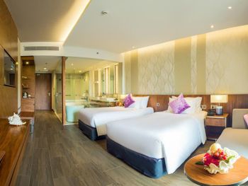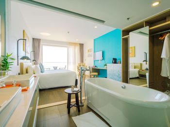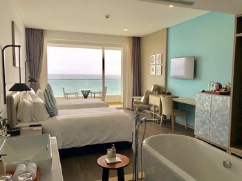 Отель абсолютно не соответствует 5*! Только завтрак очень хороший,но поверьте,вы столько не съедите,чтобы компенсировать затраченные деньги! Уборка в номере так себе, возле бассейна бумажки валяются,море и пляж -это отдельная тема.Дошло до того,что мы,постояльцы,зашли в море и собирали мусор, плавать невозможно,кругом целофановые пакеты, какие-то веревки, всё подряд...Я не против экологического субботника,но не в пятизвездночном отеле!При этом их сотрудники берег почистить не могут,грязища.Утром и вечером приходят свои вьетнамские жители,то есть пляж не частный,а общественный.Далее про Спа процедуры.Вроде как объяснили и дали приглашение на спа процедуру на одного бесплатно,а именно массаж.По выписке ещё и за это забрали 40 долларов,вы представляете,за час массажа такая сумма!Просто развод какой-то! На ресепшене при выписке служащий не удосужился переводчик включить для разговора,стоит и ехидничает. Когда заселяли нас,они все переводчики включали,а тут всё,вы нам уже неинтересны...До этого отеля мы жили ближе к северу 3 недели,Грин Лэнд, чистейшее море,не менее вкусные завтраки,номера убирали на 5, я перекрестилась, что мы на большее время проживания там остановились,иначе была бы потрачена куча денег впустую,без положительных эмоций! Считаю,что ехать туда абсолютно нет смысла.Тратить деньги,так где чисто,красиво.