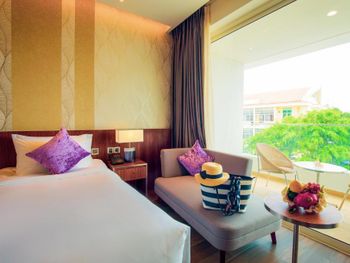 Были в этом отеле второй раз. Удачное расположение отеля: в пешей доступности ночной рынок, множество ресторанов и кафе (недалеко русское кафе), массажные салоны. Купаться можно и в бассейне, и в море. Вода в море была чистая и теплая, выходить из воды не хотелось! До аэропорта 15 минут на такси или на автобусе (отель предоставляет трансфер). Единственное замечание - не хватает лежаков во второй половине дня, У нас был номер с видом на море и мы каждый вечер любовались закатом. Это просто великолепно!