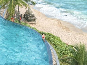 Пляж грязный, в воде много мусора и исходит специфический запах, в море было неприятно заходить. Отель находится рядом с рынком, ресторанами, но сама территория города грязная.