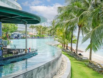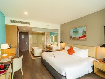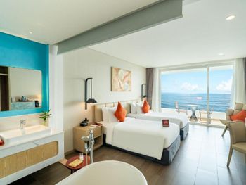 Прекрасный персонал, великолепный бассейн, вкусные и разнообразные завтраки, божественная кровать и прекрасный вид на океан. Не пожалела, что доплатила за номер с видом на океан, оно того стоит! Рядом с отелем буддийский храм на скале, к которому привозят экскурсии, рынок Night market в 5 мин хотьбы. Локация хорошая, до супермаркета Kingkong market пешком шли минут 30, но всегда можно взять такси. Решение с выдачей полотенец на пляж идеальное - выходите из отеля и сразу берете их, возвращаясь просто отдаете, можно в любой момент поменять или взять дополнительные (никто одно в руки по карточке не выдает). Лежаки удобные, места всегда хватает, как ни странно, т.к. отель большой. На завтраке народа много, а потом куда-то все деваются) Закаты и вид на них из номера и из бассейна прекрасные. Бесплатный трнсфер в/из аэропорта также приятный бонус. Персонал всегда очень приветлив и готов помочь по любым вопросам