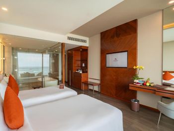 Отель абсолютно не соответствует 5*! Только завтрак очень хороший,но поверьте,вы столько не съедите,чтобы компенсировать затраченные деньги! Уборка в номере так себе, возле бассейна бумажки валяются,море и пляж -это отдельная тема.Дошло до того,что мы,постояльцы,зашли в море и собирали мусор, плавать невозможно,кругом целофановые пакеты, какие-то веревки, всё подряд...Я не против экологического субботника,но не в пятизвездночном отеле!При этом их сотрудники берег почистить не могут,грязища.Утром и вечером приходят свои вьетнамские жители,то есть пляж не частный,а общественный.Далее про Спа процедуры.Вроде как объяснили и дали приглашение на спа процедуру на одного бесплатно,а именно массаж.По выписке ещё и за это забрали 40 долларов,вы представляете,за час массажа такая сумма!Просто развод какой-то! На ресепшене при выписке служащий не удосужился переводчик включить для разговора,стоит и ехидничает. Когда заселяли нас,они все переводчики включали,а тут всё,вы нам уже неинтересны...До этого отеля мы жили ближе к северу 3 недели,Грин Лэнд, чистейшее море,не менее вкусные завтраки,номера убирали на 5, я перекрестилась, что мы на большее время проживания там остановились,иначе была бы потрачена куча денег впустую,без положительных эмоций! Считаю,что ехать туда абсолютно нет смысла.Тратить деньги,так где чисто,красиво.