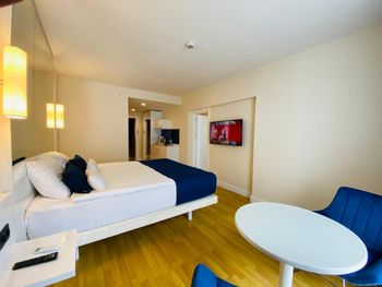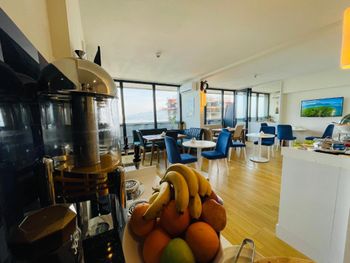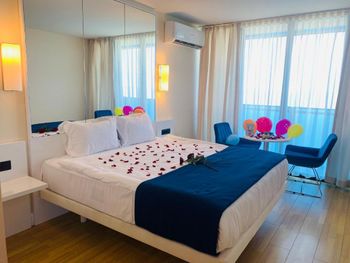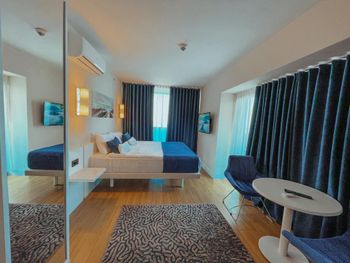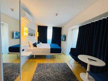 Это просто обман ожиданий. Это не отель, а просто квартиры-студии в подъезде дома. Дом находится рядом со стройкой, где работы начинаются в шесть утра. В ванной комнате все время шум воды непонятно откуда. Отсутствовал гигиенический душ в туалете. Даже вытяжки для несвежего воздуха в туалете не было. Персонал даже не утруждался объяснить куда нужно приходить на завтрак. Главное деньги за это взять, а дальше сам разбирайся что и как. От отеля до моря добираться не просто если вы с ребёнком. Ни о какой нормальной дороге даже речи не может идти. Везде стройки вокруг. Куча машин на тротуарах. Место ужасное