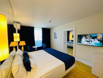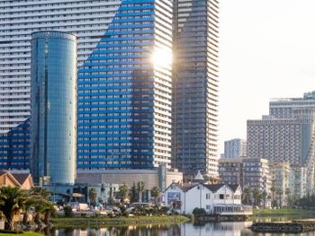 Чистые новые апартаменты с красивым видом с 40- го этажа на море и город . Мы жили в 2- комнатных апартаментах , и ими остались очень довольны - светлые , просторные ; там значительно тише , так как они угловые , и находились в конце коридора . в первую ночь нас поселили в люкс , но он находился рядом с кафе , поэтому с утра слышался шум посуды ( Понравилась девушка - массажист Кристина , хороший массаж прямо на 40 этаже , в хорошей обстановке ) завтраки хорошие , можно сразу позавтракать - пообедать , так как завтрак до 12 часов )