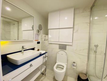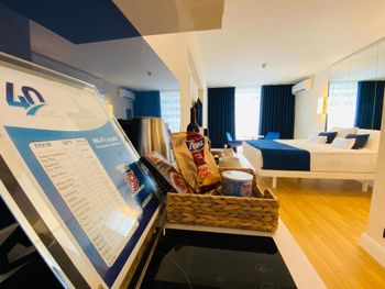Отель находится на 40 этаже здания, с балкона прекрасный вид, который на 200% оправдывает стоимость отеля. В отеле есть микро-кухня с чайником и индукционной плитой, персонал по запросу может дать все необходимое для приготовления еды. При оплате наличными не через букинг дают скидку :)