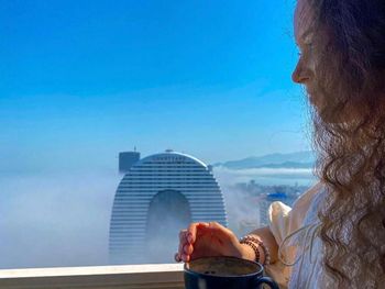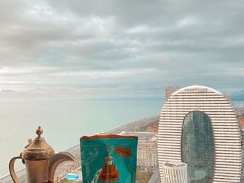 Вид на море выходил не как на фото на сторону города, а на сторону соседней башни, на другой стороне номеров не было…