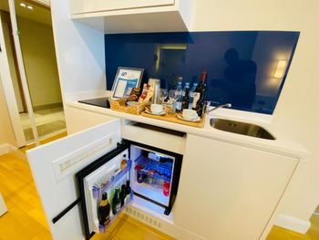 Доступный по цене мини-бар, бесплатная вода в бутылках, чай и сахар, мини-кухня. Недостатки - грязный пол, хотя я думаю это местные особенности , они везде ходят в обуви и поэтому не уделяют ему внимания, но есть тапочки !