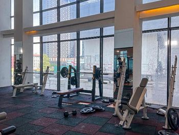 Не для слабонервных - в здании продолжается стройка. То есть вы живете на 40-ом этаже (у кого боязнь высоты - не ходите сюда) а 50-ый еще строится. К стене здания прикручен кран, подающий на верх кирпичи. Сверху ходят рабочие, заливают бетон. Спать это не мешает. Спать мешают многочисленные молодые люди, там много вечеринок проходит. Для путешествия с семьей неприятно.