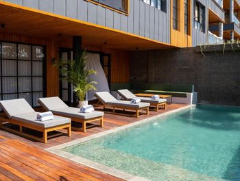 Это не пятерка конечно, но твердая четверка - хороший городской отель, состоит из двухэтажных лофтов которые принадлежат разным хозяевам и находятся под управлением, но в общем то это никак не влияет на проживание :) Из очевидных плюсов: шикарный просто двухэтажный качественный спортзал, очень достойный. И персонал просто супер - вежливые, очень услужливые. Поздравили нас с днем рождения с тортиком и песенкой - было очень мило :) На крыше большой бассейн с лежаками вокруг, бар и ресторанчик - но вечером закрываются рано и шума нет, спать не мешает. Днем все туда ходят тусоваться. Терраса с видом на океан. В номере на первом этаже полноценная кухня с плитой, посудой и большим холодильником. Наверху спальное место и небольшая рабочая зона