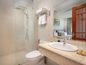 Очень старенький отель, в номере деревянный пол, мебель очень старая и вся в пятках, освещение плохое, в ванной комнате душ не отделен перегородкой от унитаза и раковины, что для нас было неожиданностью. Совершенно неудобно принимать комфортно душ, всё вокруг заливало водой, в том числе и всё, что находилось на раковине, и всё что висело на двери и полочке. Кафель в ванной очень старый, было неприятно. Бронировали на 7 ночей отель, но сбежали через 3 дня.