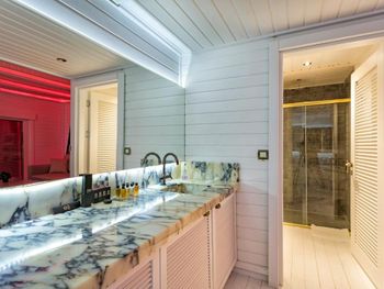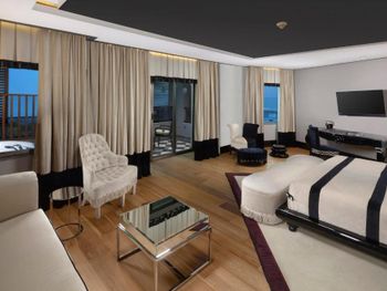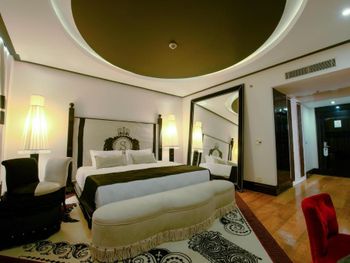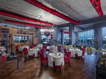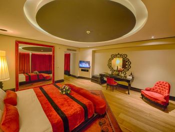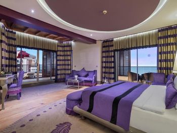 Начну с очень спорного дизайна отеля, бархат красное черное, напоминает мулен руж какой то). Встреча по приезду прошла нормально, шампанское то сё, я спросил нет ли номеров получше и тут самое интересное, мне сделали апгрейд и ошибка была в том, что я не посмотрел свой номер сначала, по итогу скажу, что у нас в компании было 4 номера и по удобству (а не по цене) наш номер "повышенной категории" был худший, да и вид на море оказался видом на помойку, как мне доказывала девушка Лейла на рецепции, что вид на море в их отеле такой и есть (то есть боковой), и то что пишет букинг ком на сайте их не касается. Странно не правда ли? Фото "вида на море" прилагаю. Жаль всё это обнаружил 5 дней спустя, и перезжать уже смысла не было. Непонятная система помощи постояльцам, ассистенты...помощь от них была и в то же время можно было обойтись рецепцией. Анимации в отеле никакой, один приветливый дядька и очень неприветливая девушка, так и не понял чем они занимаются. Еда в отеле традиционная как и везде, всё есть вроде, уступает как минимум отелю (не буду называть) в котором были в прошлом году. Девушки у входа в ресторан с кислыми лицами, здоровались через раз. Вообще с персоналом надо работать , чтобы побольше улыбались, а то все смурные какие то. Пляж как пляж, лежаки павильоны. Мы заказали павильон на пирсе, так называемые кабаны. Всё бы ничего, но сидишь там как на вокзале, нескончаемый поток людей к бару и обратно проходит мимо вас, сидишь как в музее, каждый разглядывает чего вы там делаете))) И самый прикол, что цена на павильон объявлена в евро , а снимают в лирах, то есть в итоге получается дороже по любому, очередная хитрость , чтоб побольше слупить денег. И отговорка типа ваш банк виноват % снимает не катит, списали бы в евро никаких процентов не было бы. На кондиционировании в отеле экономят, в местах общего пользования частенько просто было жарко. Много чего можно еще написать, но места нет).