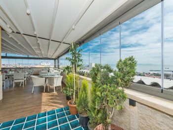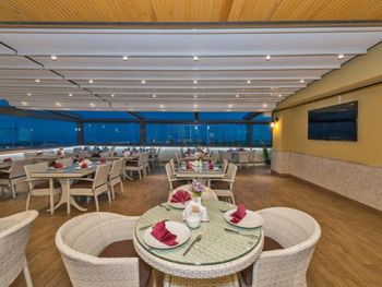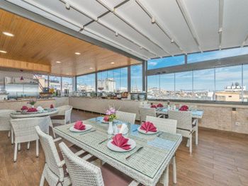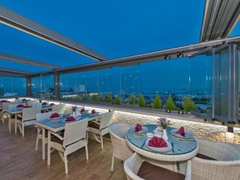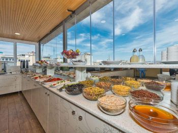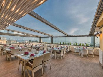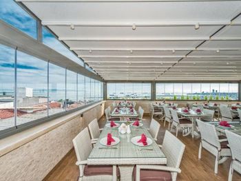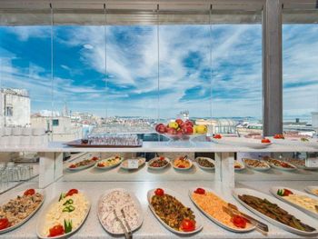 По утрам сервируется завтрак «шведский стол». В баре отеля можно заказать напитки. В расположенном на террасе ресторане гости могут поужинать и полюбоваться панорамным видом на Мраморное море.