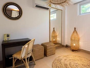 Fitted with stylish wooden furnishings, spacious rooms enjoy views of the tropical garden or sea from the private balcony. A flat-screen TV and kitchenettes are included in some rooms.