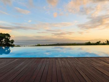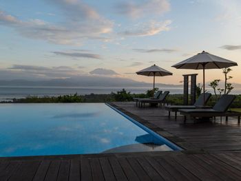 мы брали люкс с видом на океан. вид, действительно, был на него, но за счёт того, что нас поселили в самом крайнем домике (при наличии других пустых домиков) , сбоку был какой-то полуразрушенный сарай, который подпортил общее впечатление. в номере грязно, грязное постельное белье , вонючие полотенца с пятнами. мы заказывали обед в номер , тарелки никто не удосужился убрать , хотя к нам приходил персонал, чтобы поморить москитов (после третьей просьбы). весь отель кишит сороконожками- возле номера , возле бассейна и даже в ресторане, завтракать было некомфортно.
