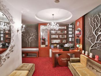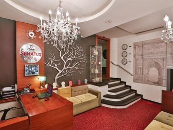 Современные номера отеля Senatus обставлены элегантной мебелью. В каждом номере есть ЖК-телевизор с кабельными каналами, рабочий стол и ванная комната, отделанная мрамором. В некоторых номерах установлена гидромассажная ванна.