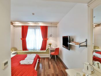 Отличный персонал - все объяснили, показали на карте где мы, куда стоит сходить, все что отметили действительно мы посетили, по рекомендации ездили на такси - посути около 200 руб до улицы Истикляль, где куча магазинов массмаркетных (по ценам на процентов 50 ниже чем в РФ с учётом такс фри ещё лучше), отличных и недорогих баров. Так же дают скидку 10 процентов в ресторане который привязан к отелю, в крайний день прибывания мы там были - отличный сервис, вкусная еда с большими порциями, знали бы - сходили бы ни один раз. 1. Брали номер с террасой на 5 этаже. Номерок небольшой но уютный, есть тв с русскими каналами, кондиционер, в декабре было тепло в номере, кондиционер на тепло даже не включали, хотя проверяли - тоже работал ) дают тапочки, полотенца, жаль нет халатов. Есть минибар, цены в евро - не особо дешевые, не пользовались ) только как холодильником им пользовались. В ванной есть фен, шампунь (вроде бы, так как на одном тюбике было написано крем, на другом гель для душа). 2. Завтрак. Куча местных закусок, даже есть острые, что радует. 4 горячих блюда которые менялись день ото дня (были всего 4 ночи - блюда не повторялись), завтрак до 10:30 что тоже радует, дают кофе из кофемашины или чай, оливки, маслины, печенье, хлопья… вообщем голодными не оставались, единственное может бы хотелось больше фруктов. 3. Местоположение отеля отличное как по мне, куча ресторанов вокруг, шумновато было в субботу когда видимо гуляли не до часу ночи как обычно а позже ) но в целом никак не напрягало так как за целый день нагуливались по Стамбулу и засыпали хорошо. Рядом множество достопримечательных мест. Для пешей прогулки самое то! 4. Уборка была каждый день, никого искать и заставлять не нужно было ) молодцы. Есть лифт