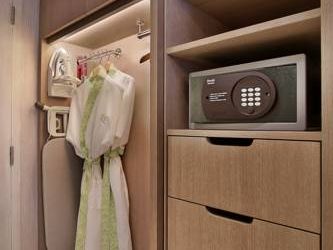 Номер маленький, но достаточно комфортный. Есть халаты , тапочки, чайник, утюг, фен, гигиенические средства. Хороший завтрак. Хороший кофе. Приносят 4 бутылки воды каждый день. Удобное местоположение. Рядом улица в кафе и бутиками.