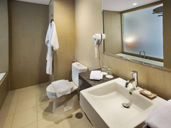 Featuring warm lighting and wood fitting, rooms have a flat-screen satellite TV, complimentary coffee and tea making facilities and a seating area. A private balcony is featured in select rooms, while a safety deposit box and free bath amenities are a standard across all units.
