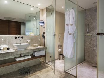 В номерах курортного отеля Sensimar Side постелен паркетный пол и установлена современная мебель. Все они оснащены телевизором со спутниковыми каналами и мини-баром, который пополняют ежедневно.