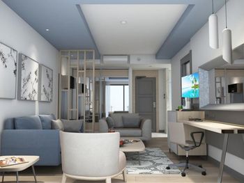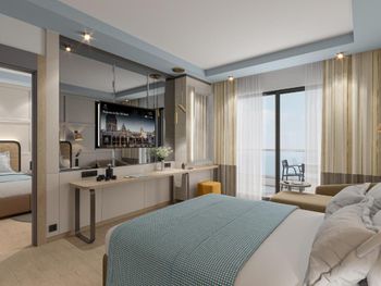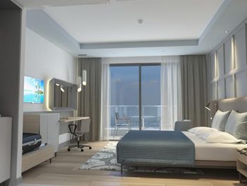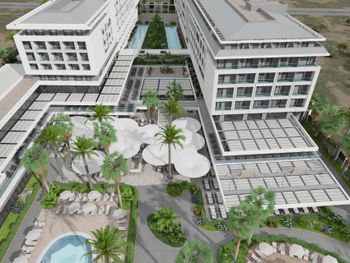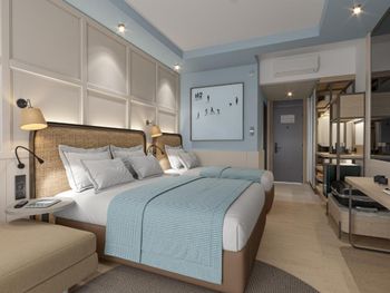 Отзыв лишь по факту, о минусах, с которыми пришлось столкнуться в отеле, НО, это минусы, которые можно и не замечать, и при этом они имеют вес и влияют на проживание в, и в своей совокупности на его восприятие. Отель для КУРЯЩИХ!!! Везде, просто везде стоят пепельницы, даже в номерах. И есть гости, кто курит в душе и туалете, а значит, у Вас в номере. Семейный номер #1716 его расположение в 1-ом корпусе, дальнем от пляжа, на седьмом, последнем этаже. В корпусах всего по 2 лифта, как итог, его ожидание и езда на них требует какое-то время. Седьмой этаж 1-го корпуса видимо является вентиляцией главного ресторана на первом этаже, и поэтому дым и запах жаренного мяса или яичницы по утрам, будет будить вас раньше будильника, поставленного на 8 утра. И так, несколько раз в день, каждый день отдыха! + Плюс к этому общие фоновые шумы региона, либо шумы кондиционеров на крыше, т.е. отдохнуть с открытым окном не всегда приятно. Как я уже упоминал – 7-ой этаж! Вода – горячая вода из-под крана в номере, появляется не сразу, а минуты через 2 после включения, в крайнем положения крана, и при этом будет не всегда постоянной температуры и напора. Наш семейный номер был совершенно другим, не тем, что изображён на рэндерах отеля, была одна большая студия с перегородкой, разделяющей зону гостиную и спальни, естественно без дверей. Телевизора 2 два, конечно, это доставляет неудобства при раздельном отдыхе. Отсутствие дверей в ванной комнате, при отдыхе с детьми, не совсем способствует приватности. Номер боковой, последний на лестничной клетке, с одним общим окном и балконом, меньшего размера, чем тот, что указан на фото. Уборка – посредственная, только лишь заправить кровать и потереть пол, при чём не очень качественно, грязь и мусор предыдущих гостей, вы будете находить ещё дней 5 пять. Полотенца и добавление геля и шампуня в ванную не каждый день, а вернее никогда, ведь есть дозатор на стене, для всего.