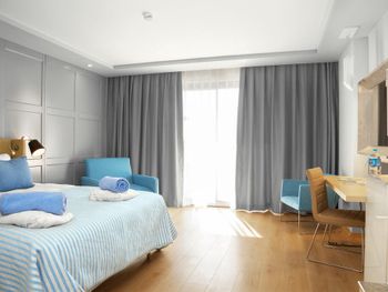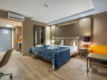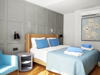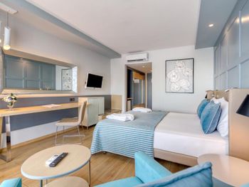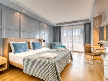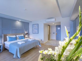 Из основных минусов: - Плохой пляж : единственный нормальный заход в море находится через пирс, остальная береговая линия - мутная грязная, вода, мелко, очень каменистое дно, в первый день ушибла ногу и хромала, слышала от других туристов про другие травмы при заходе в море. Кстате заход через пирс менеджится спасателем, который сам можем решить плавать вам или нет несмотря на погоду (однажды при отличной погоде спасатель не пускал людей на пляж обосновывая плохой погодой просто потому что не хотел работать и поскорее покинуть место - Маленькая территория: большое количество людей, неправильное организация пространства, скопление людей на маленькой площадки при пустующем неиспользуемом пространстве, игнорируются правила приема туристов при пандемии, близость отеля вплотную с другими отелями и как следствие шумная музыка со всех сторон. - Грязь : грязь на пляже, около бассейна и т.д. - Не отзывчивый и некомпетентный персонал : каждый день сталкивались с ситуациями когда персонал или не был способен решить проблему или грубил или игнорировал проблему. Я отдыхала с именинницей (мамой), так вот не ждите что отель нормально сможет поздравить именинника и во время. На мой вопрос почему так, они ответили, что у них еще 12 таких имениников сегодня ("отличная" клиентоориентированность). - Сплошной абсурд в организации. Как пример прикладываю фотографии лавочек которых на и так маленькой территории отеля довольно много, лавочки организованы в местах для курения, лавочки металлические (отличное решение в жару) и на лавочках запрещено сидеть. - Реальность не соответствуют фотографиям. Есть очень много неточностей между представленными на фото номерами и удобствами и реальностью. Ощущение, что на букинге выставлены не фотографии, а рендер, или в случае если фото - все очень качественно отфотошоплено. - Отсутствие нормального менеджмента. Сложилось впечатление что отелю не хватает нормального менеджмента который привел бы все в порядок