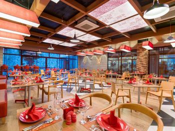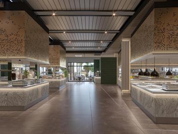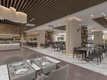 Из-за пандемии не было возможности самостоятельно накладывать себе еду, вы указываете на блюдо, официант кладет в тарелку. Иногда были очереди на раздаче. Вафли, мороженое и национальные лепешки с начинкой-- гюзлиме так же готовят по определённому расписанию, отсюда вечные очереди за ними. Зато чайный бар с невкусными сладостями на нижнем этаже был всегда пустым. Отель в основном семейный, готовьтесь, что будет много детей разных возрастов (этот комментарий скорее для тех, кто едет один, парой, или компанией без детей :)) в зоне бассейна 16+ относительно тихо ;) Из-за пандемии так же был закрыт внутренний бассейн и внутренняя дискотека. Дискотека у пляжа заканчивалась в 00.00 (на всем побережье так, не только в отелях). В конце октября-начале ноября было несколько дней ливней. Это отдельная история! Кое-где крыша лобби течет! Ведра,полотенца, таблички "мокрый пол" (он реально скользкий, если что), понятное дело пляж, уличные бассейны, бары и прочие наружные локации на время дождя закрыты. Как думаете, где собираются все отдыхающие? ;) Правильно! Внутри основного здания! Туда же переходит вечернее шоу! Отсюда очереди в лобби баре, отсутствие посадочных мест, не всегда стабильный wifi. Но это мелкие мелочи на время сильного дождя и детских каникул ;)) Про лежаки: их много)) но они всегда заняты полотенцами, часто без хозяев!!! Порой целый день! Не себе-- не людям! С этим нужно что-то делать, жирный минус! Кстати, полотенца для пляжа вечером часто можно было только сдать, не было чистых для обмена.(( Записаться в рестораны Аля карт довольно сложно (( в итоге попали только в один-- Алибаба, лучше бы не попадали! Еда была совершенно невкусная по сравнению с основным рестораном! Зато красивый вид на море с террасы над пляжем ;)
