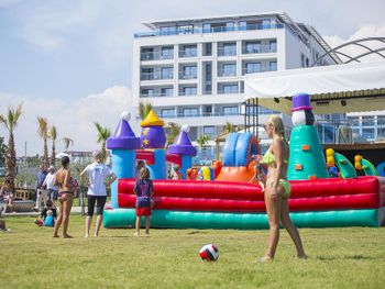 Заранее просили, чтобы дали два номера рядом, но дали только через коридор. На третий день предложили один большой на всю семью. Мы отказались. Территория отеля «убитая» хотя отель не старый. Шезлонги на пляже сломаны, зонтики ржавые. Полотенца тоже выглядят не очень. Питание разнообразное, но качество оставляет желать лучшего, как и напитки. Ощущение, что все разбавленно. Анимация для детей : утром - раскраски, вечером дискотека.