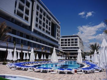 Отель чистый, убирали каждый день. Рядом с отелем рынок с турецкой одеждой. Куча магазинов на любой вкус, маркеты с продуктами, турагентства. Людей было много, все лежаки на пляже и возле бассейна быстро занимают полотенцами. Для меня минус - вода в бассейне была холодная. Из еды: все вкусно и много. Каждый день тематические вечера, иерейская кухня, рыбный день и тд. Алкоголь- был якобы импортный виски Кентукки и МакГрегор, но по вкусу как и местный виски. Вечерней анимации как по мне было мало и скучно, сначала для деток, потом шоу для взрослых с танцами. И все на баре сидят тихо пьют. А из соседних отелей валит музыка