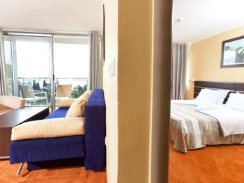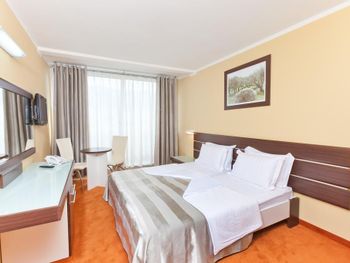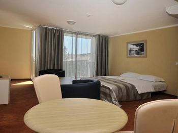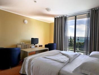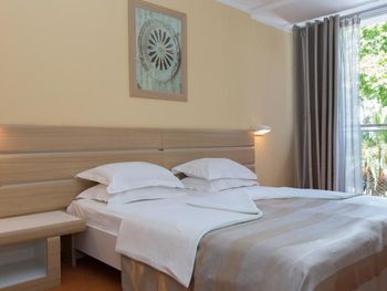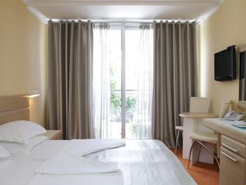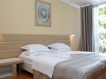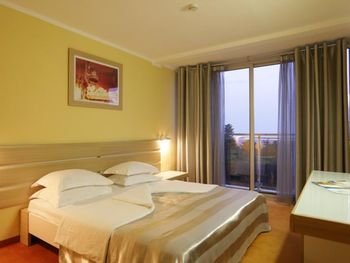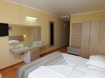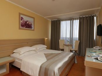 Нам повезло со сменой на ресепшен, нас с маленьким ребёнком заселили очень быстро, на 4 часа раньше. Но на этом положительные моменты закончились. Убирали очень плохо, приходилось мыть пол самим для ребенка, который хотел ползать, постель меняли редко, полотенца и постель все застираны до дыр, кроватка для ребёнка засаленная и с дырками, еда однообразна и не всегда вкусная, удивило отсутствие весов для чемоданов, пляж грязный, одни окурки, зубочистки и пробки от бутылок, ни чего абсолютно нет для детей, в столовой дикие очереди из европейских пенсионеров, чтобы присесть на ужин надо стоять в очереди за 15 минут до открытия столовой, рестораном назвать сложно это место. Бечичи не место для отдыха с детками, да и молодёжи тут делать нечего. Пойти некуда, только пляж. Отелю 4 звезды много!!! Добил аэропорт... Я уж молчу, что нам случайно аннулировали обратные билеты, так в самой зоне ожидания как в загоне для скота, ни кондиционеров, ни кафе, даже в магазин с коляской нельзя, на сколько он мал.