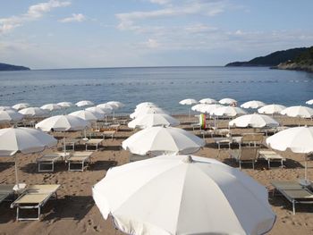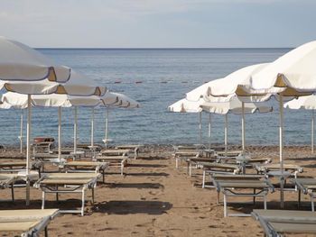 Выдача полотенец на пляже стала платной, выносить полотенца с пляжа не рекомендуют. На период обеда оставляли на шезлонгах, а чтобы на следующий день использовать не получится. С пляжными полотенцами выход запрещён. Каждый день полотенце приобретается за 50 центов.