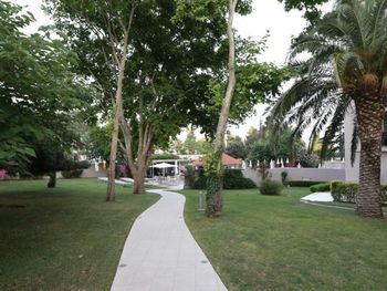 Близко к морю и бассейн можно загорать на травке под деревьями